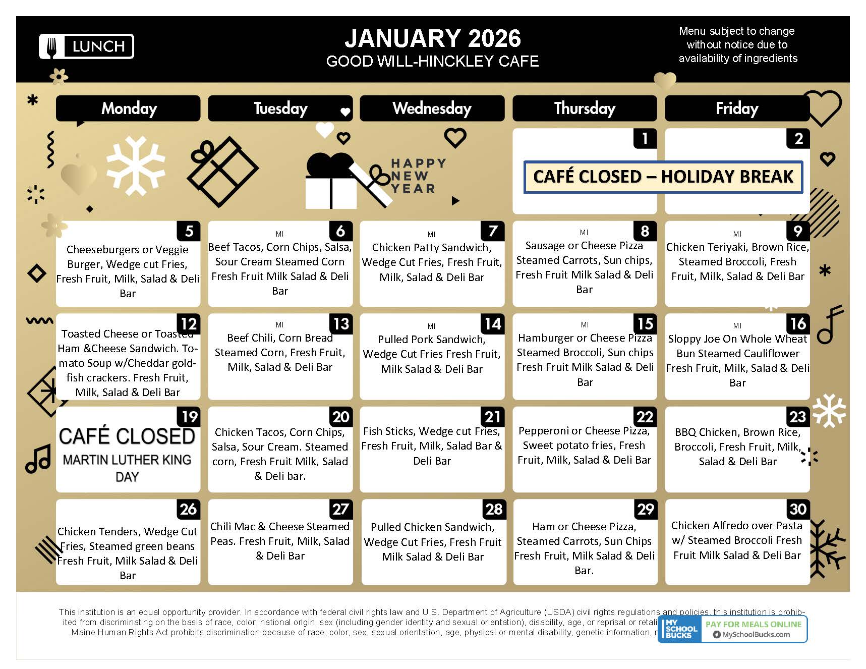 - January 2026 – Lunch Menu